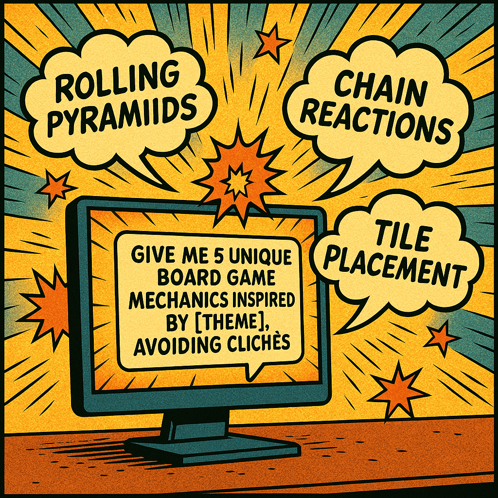 Prompt: “Give me 5 unique board game mechanics inspired by [theme], avoiding clichés.”